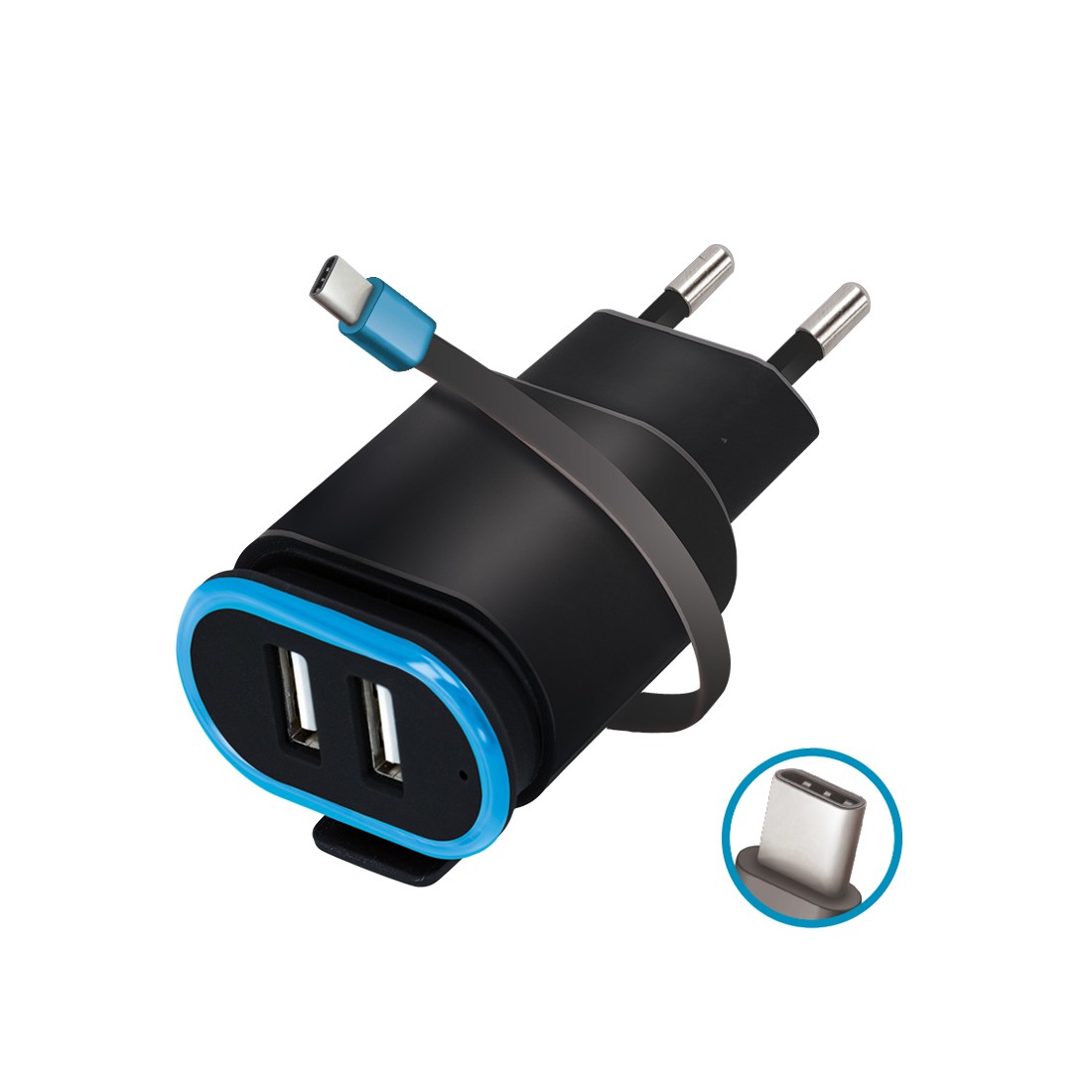 Caricabatterie universale con cavo da 0,20M TYPE-C + 2x USB 2.4A TC-02