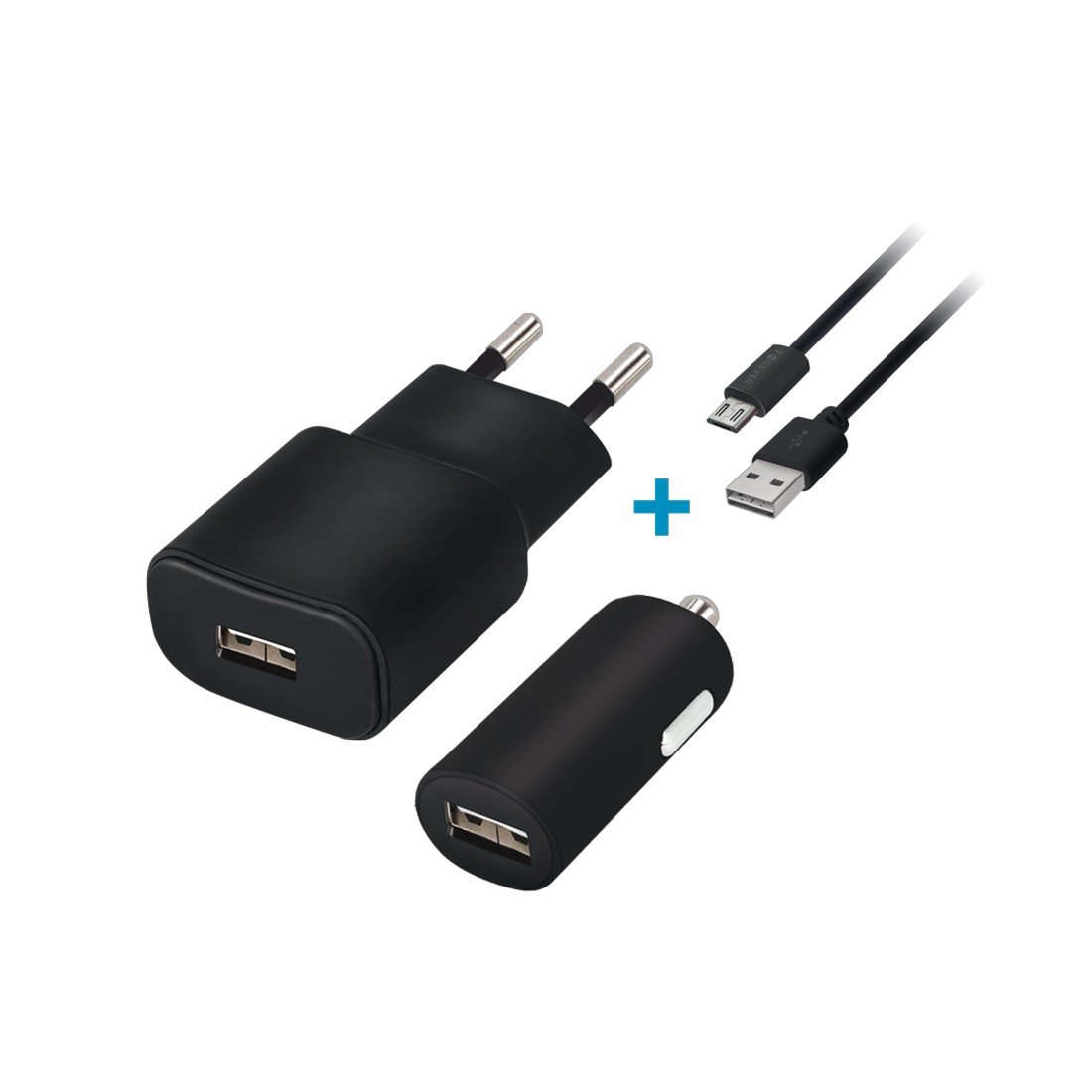 SET Caricabatterie da rete + Auto universale cavo micro Usb 1A 5v Nero