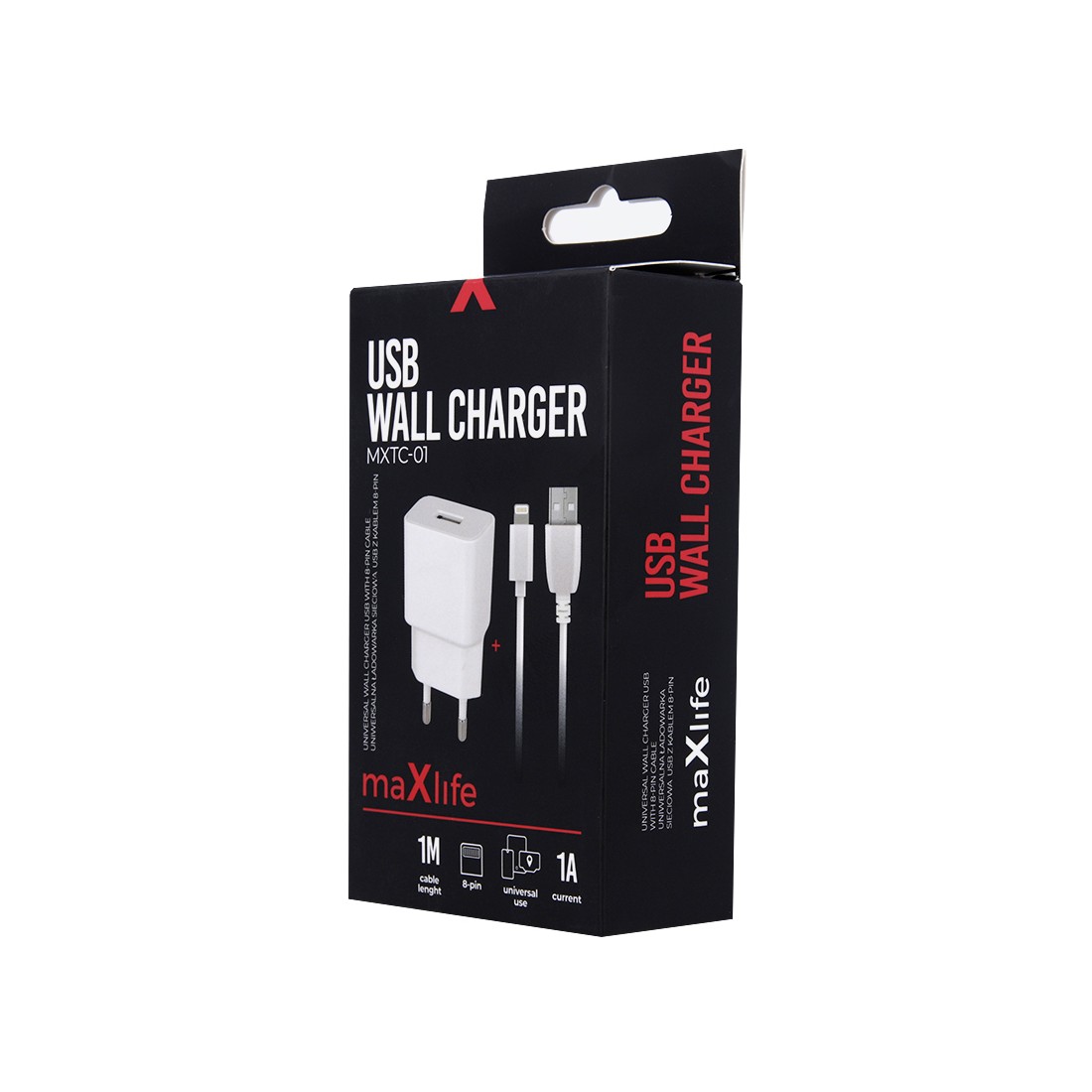 Caricabatterie da rete USB spina + Cavo per Iphone 11 - X - 8 - 7 - 6 - 5 Lightning 1A Max 1 metro Bianco