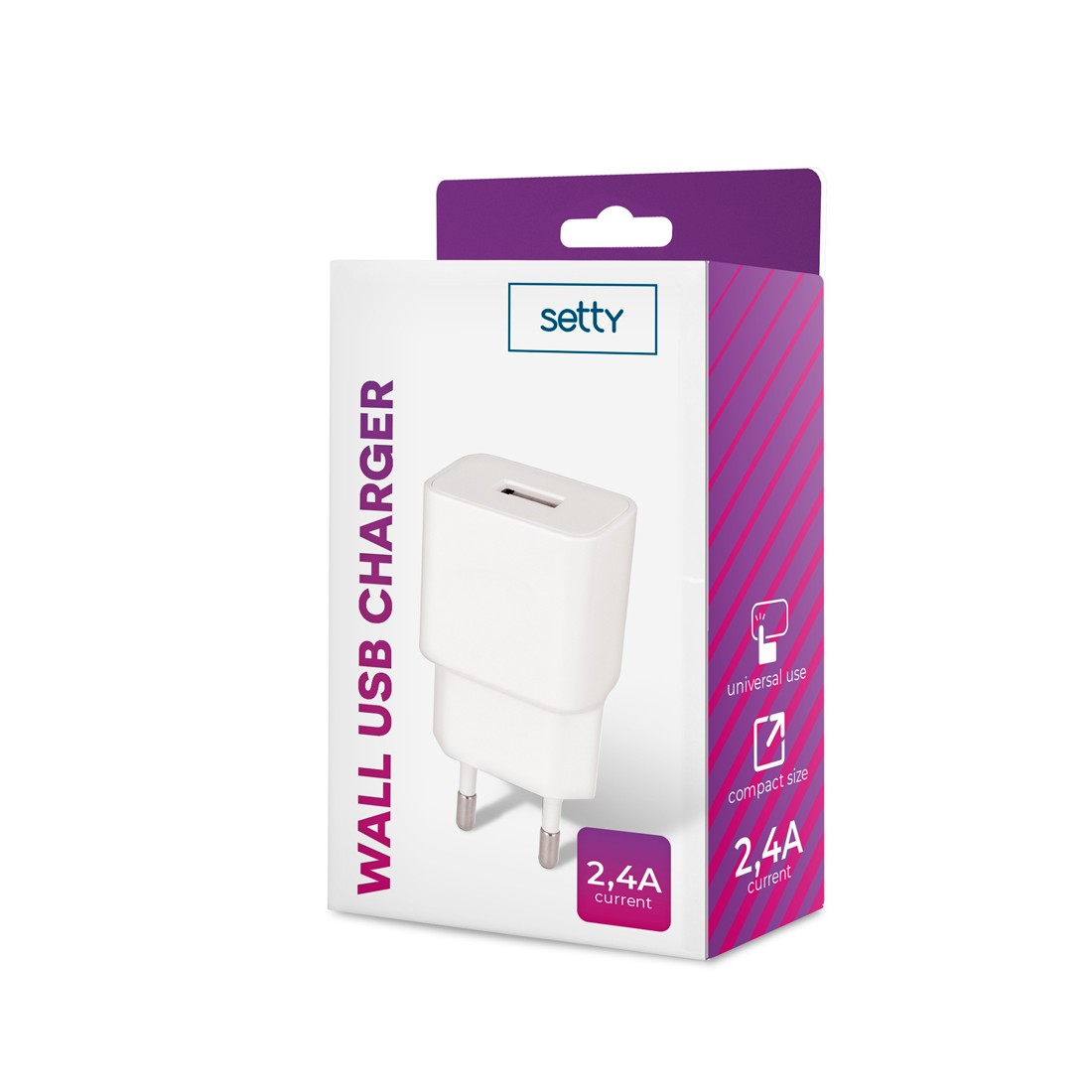 Presa Caricabatterie USB Spina senza Cavo Universale 2.4A 2A Setty Bianca