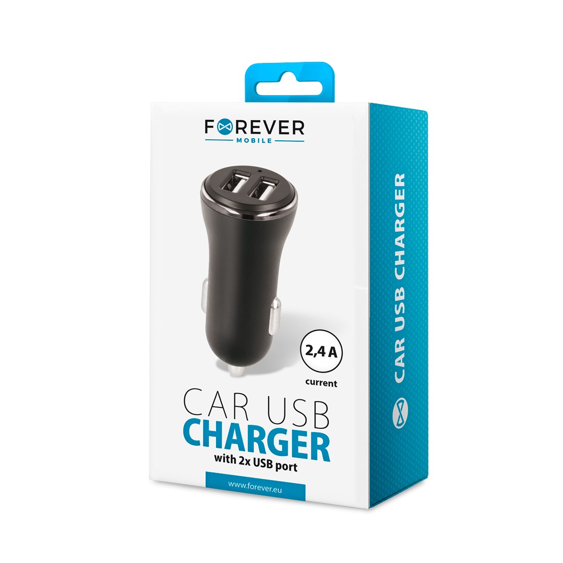Caricabatterie da auto doppia uscita usb Fast Charge Ricarica rapida 2.4 A CC-03 Nero