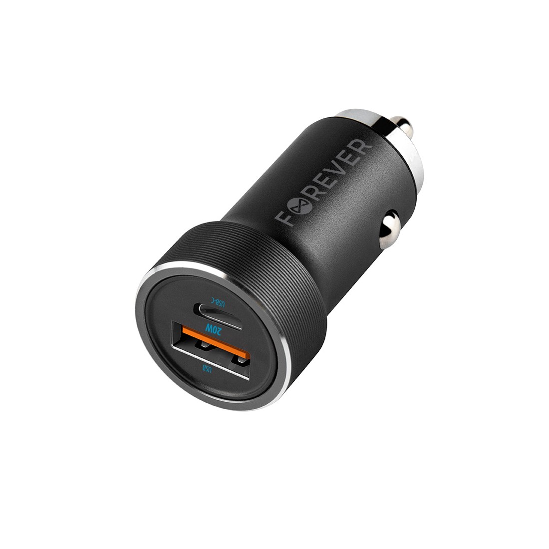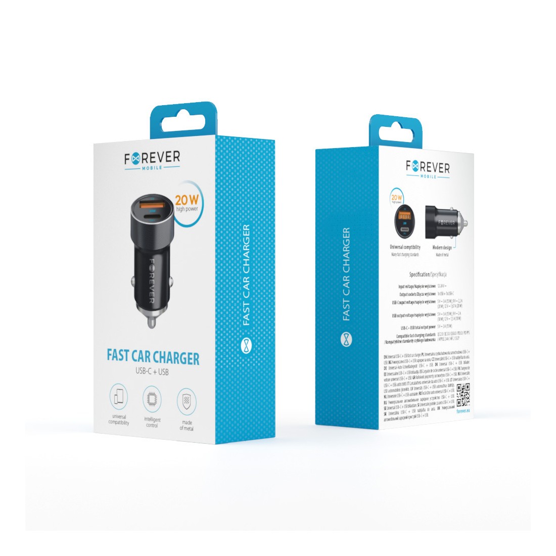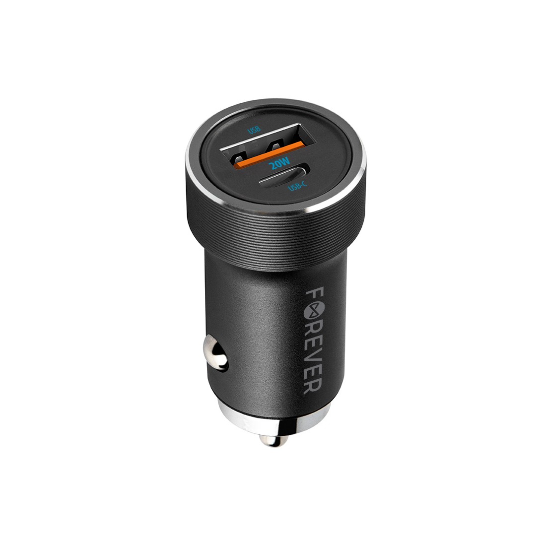 Caricabatterie da auto doppia uscita Fast Charge Ricarica rapida PD3.0 + QC3.0 CC-06 1x USB-C 1x USB 20W nero