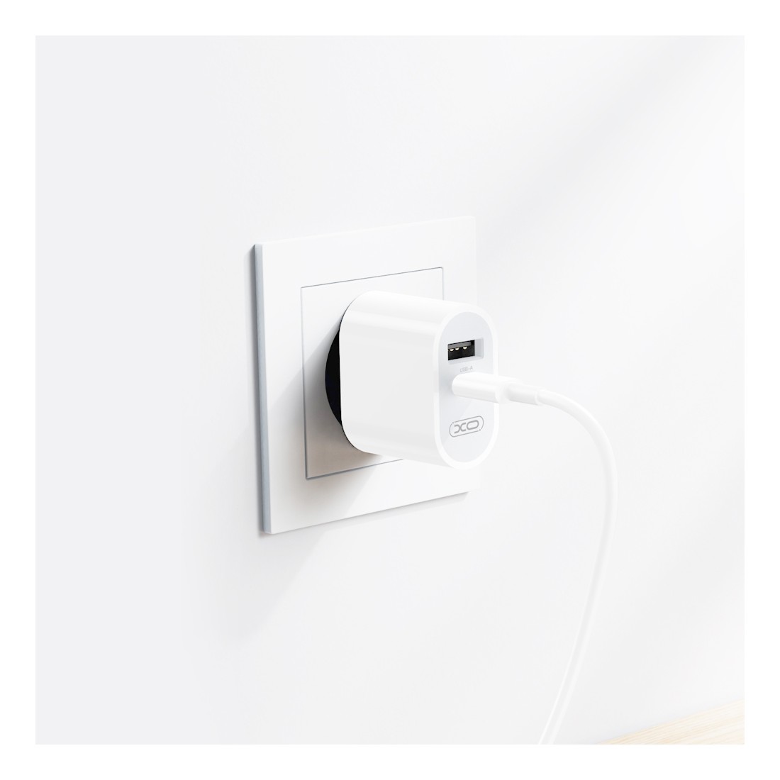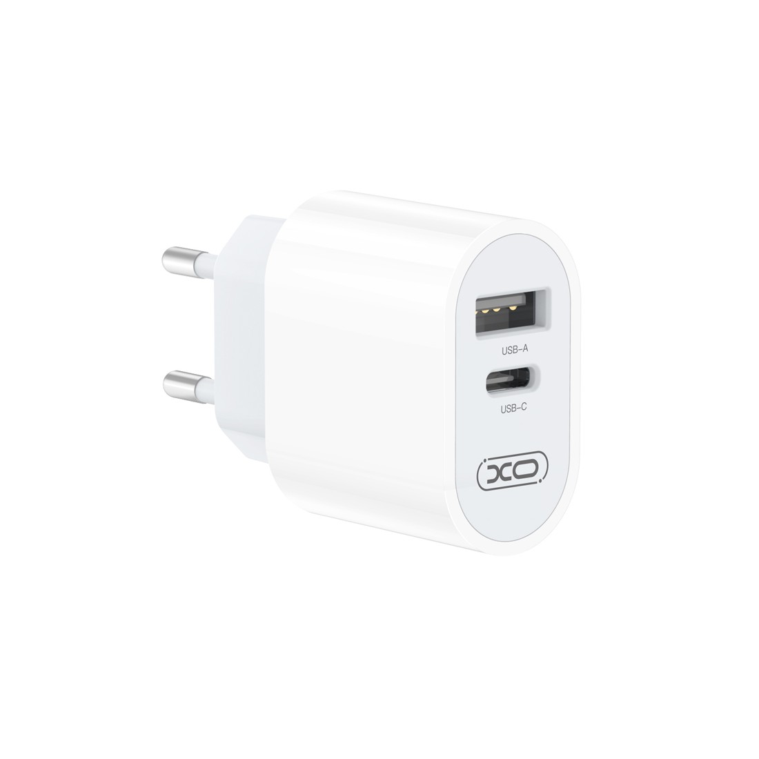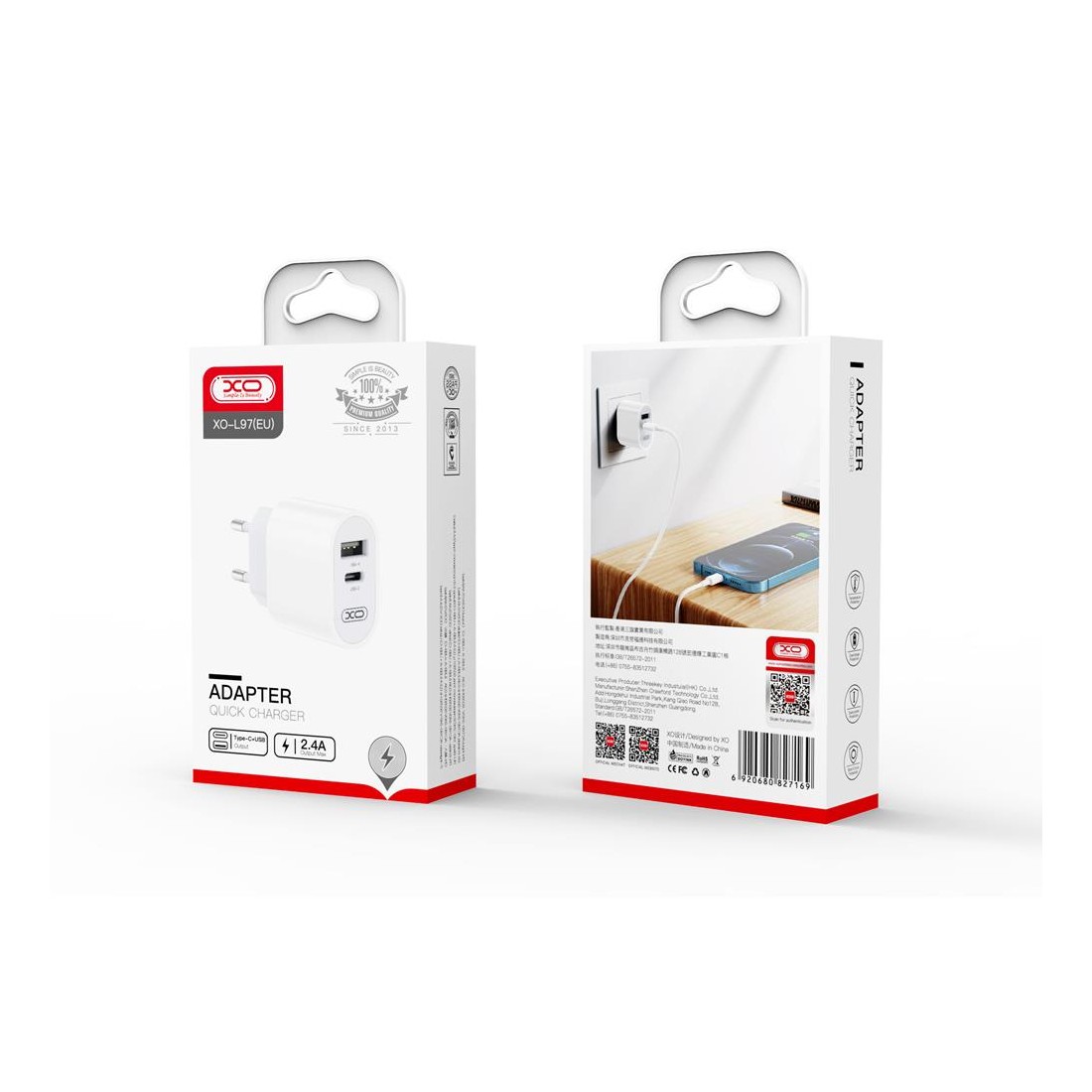 XO L97 è un caricabatterie da parete avanzato di due prese, una è USB e l'altra è USB-C.