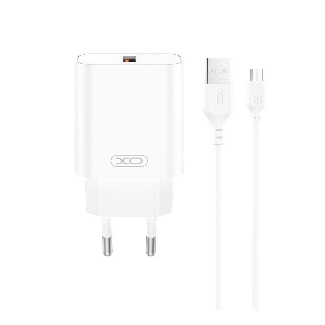 Presa Spina Caricabatterie XO wall charger CE33 QC 18W 1x USB + cavo microUSB Ricarica Rapida iPhone Universale bianca