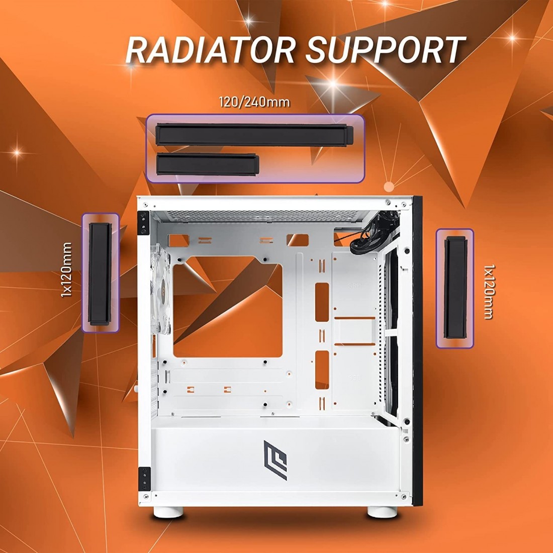 Pre-installata 1 ventola bianca RGB Rainbow: (una retro), attacco molex ed incluso connettore principale molex di colore rosso.