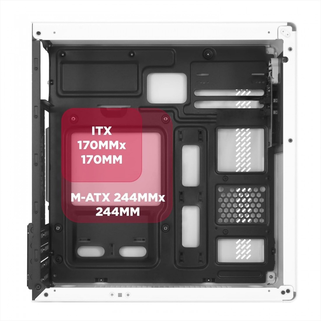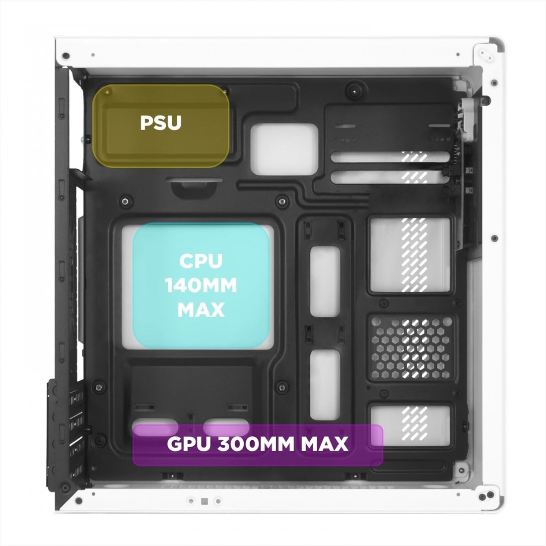 Il case supporta schede madri MicroATX e Mini-ITX, può ospitare fino a quattro dischi rigidi, tra cui 2 HDD da 3,5’’ e 2 SSD da 2,5’’, è in grado di equipaggiare schede grafiche fino a 300 mm di lunghezza, CPU COOLER fino a 140mm di altezza e dispone di 4 slot di espansione.