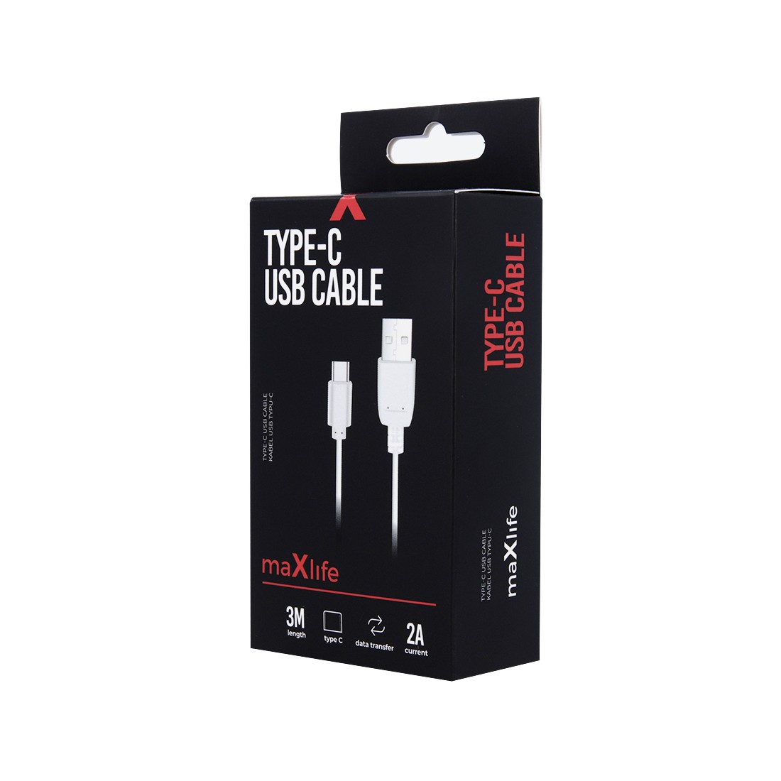 Cavo USB TYPE-C FAST CHARGE 3A Universale 1 metro RICARICA RAPIDA 2.1A Maxlife Bianco