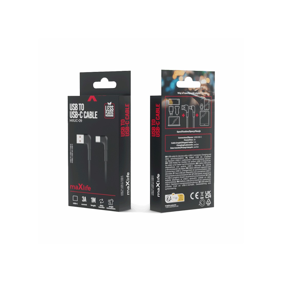 Cavo USB - USB-C Maxlife MXUC-09 cavo angolare 1,0 m 3A nero