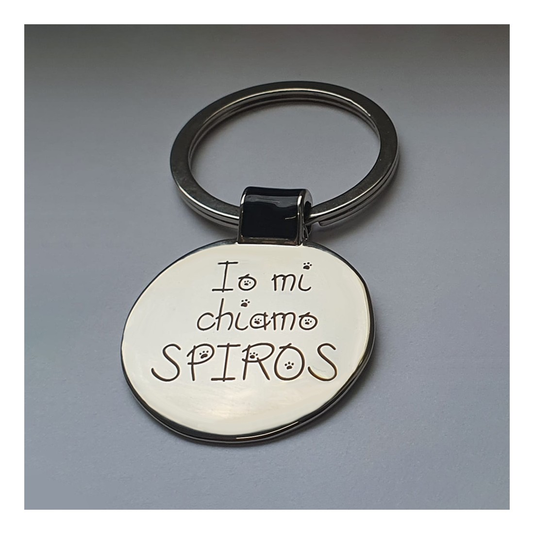 I nostri portachiavi personalizzati rotondi sono realizzati in metallo con finitura lucida in nickel.