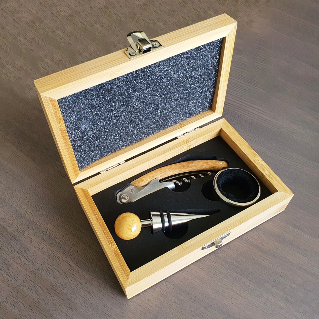 I nostri Set da Vino personalizzati sono realizzati con cura e venduti in una bellissima confezione in legno naturale.