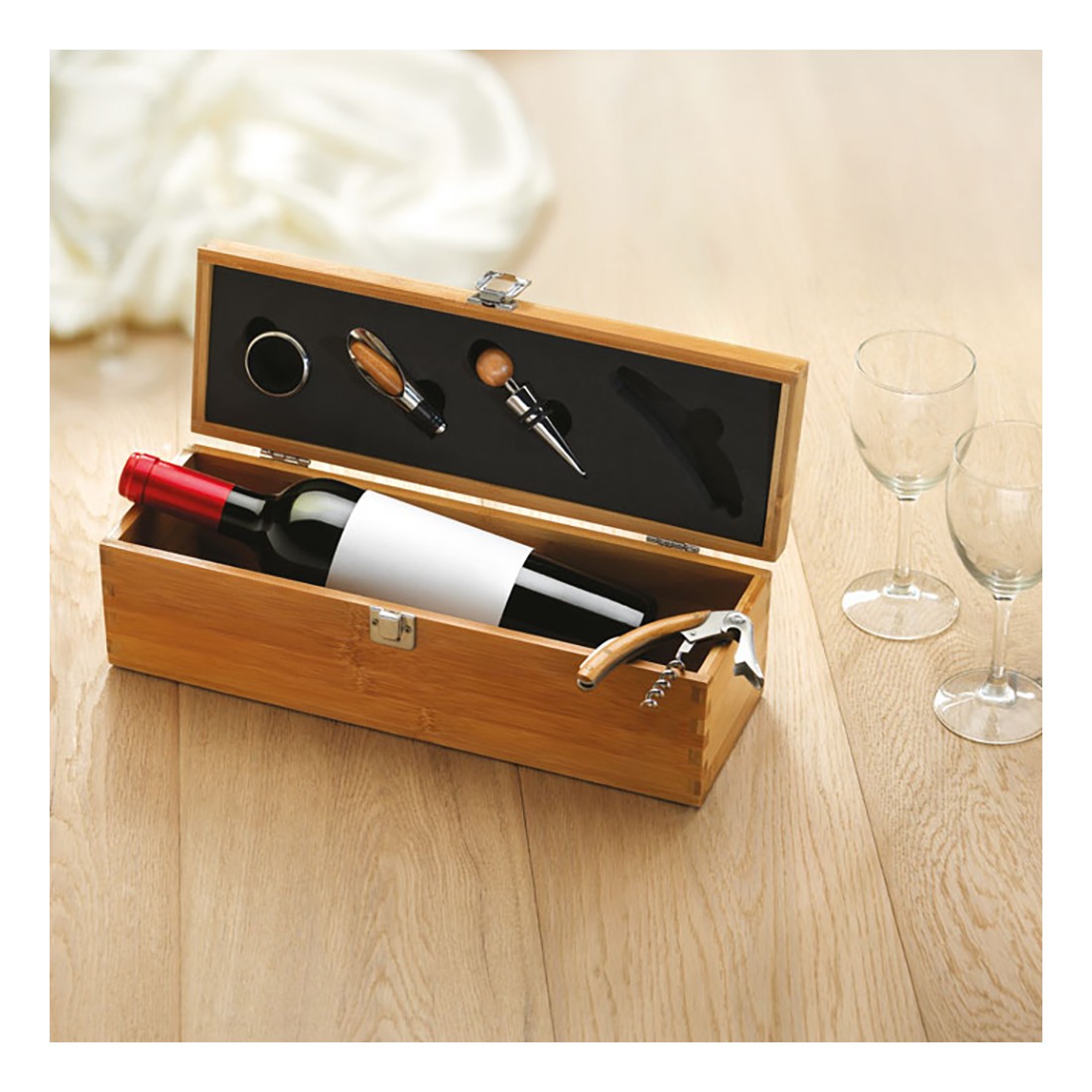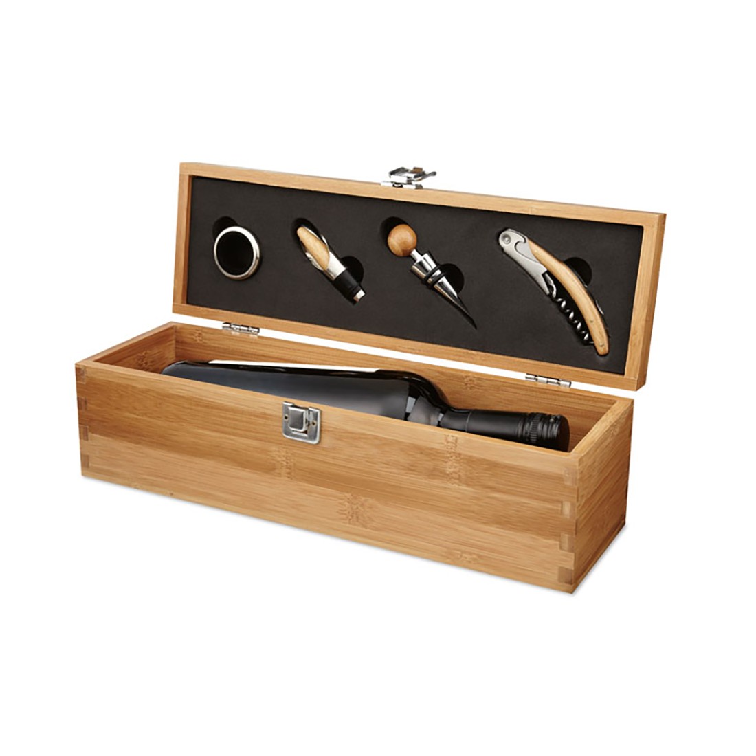 I nostri Set da Vino personalizzati con porta bottiglia sono realizzati con cura e venduti in una bellissima confezione in legno naturale.
