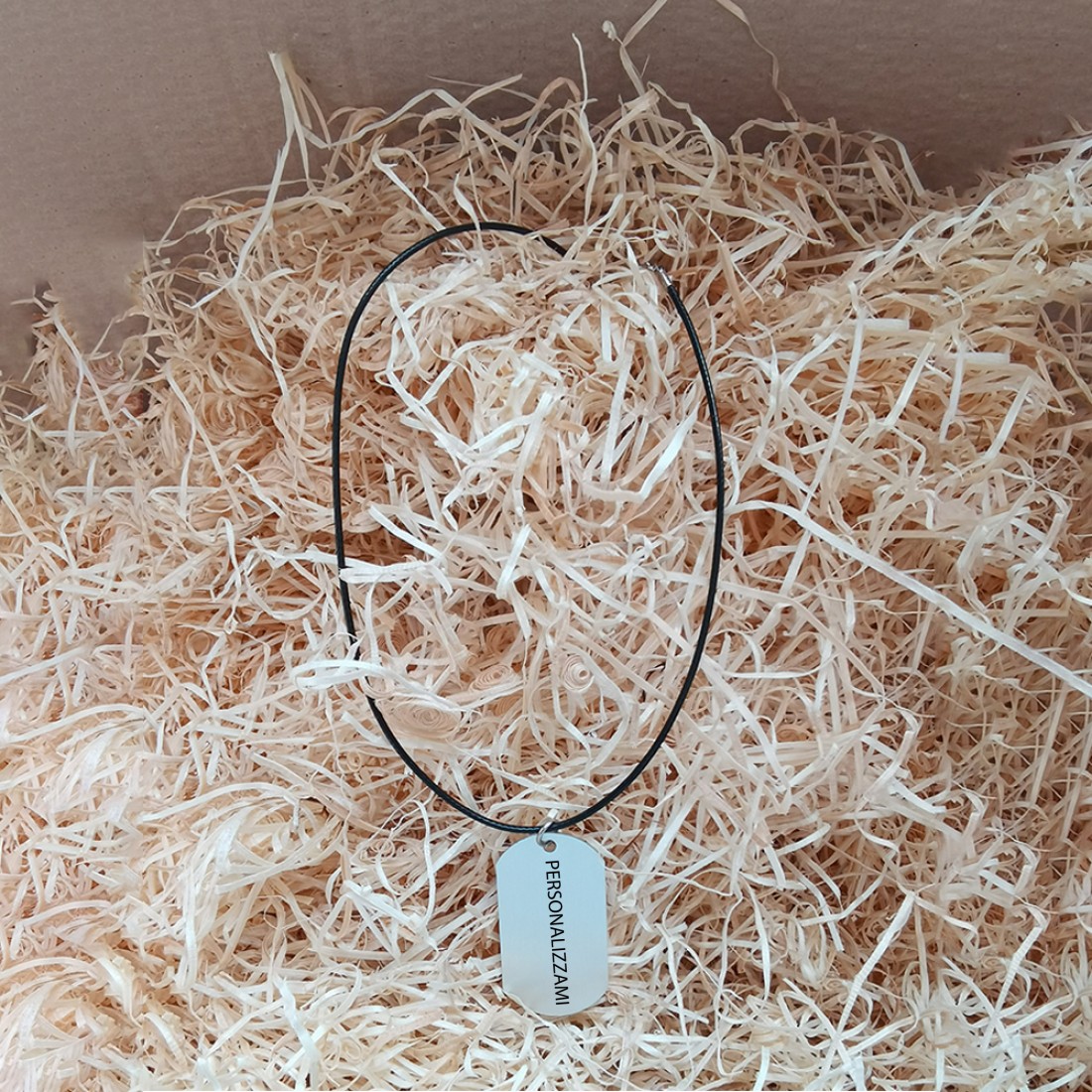 Le nostre collane personalizzate a forma di piastrina sono realizzate in alluminio e sono molto resistenti.
