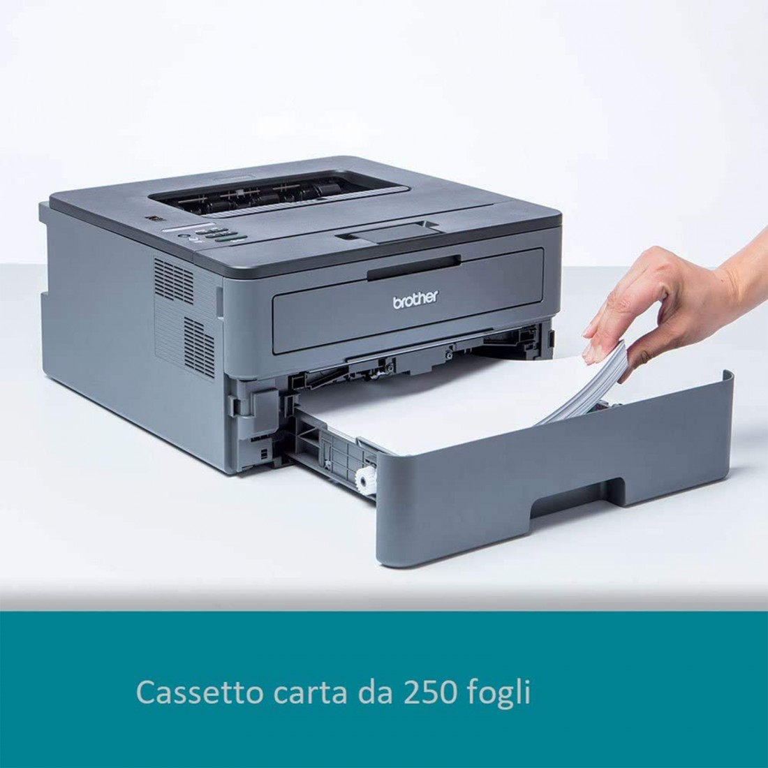 II modello HL-L2310D Brother è una stampante laser monocromatica silenziosa e compatta progettata per gli uffici di piccole dimensioni con elevati volumi di stampa. Questa stampante, di facile collocazione sulla scrivania, consente di stampare rapidamente testi nitidi e di alta qualità con un basso livello di rumorosità.