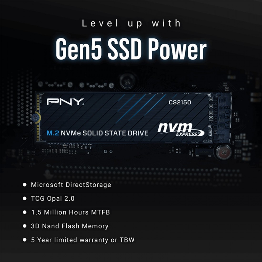 PNY CS2150 SSD 1TB M.2 NVMe PCIe Gen 5.0 M280CS2150-1TB-TB